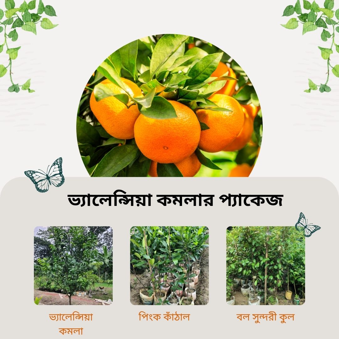 ⭐ প্যাকেজে যা যা পাচ্ছেন ৪টি ভ্যালেন্সিয়া কমলার চারাদ্রুত বৃদ্ধি পায়, রোগবালাই কম হয়, এবং ফল হয় মিষ্টি ও রসালো। ফ্রি উপহার (Gift Pack): ১টি বল সুন্দরী বরই চারা ১টি পিংক কাঁঠালের মাতৃ কলম চারা এক প্যাকেজেই পাচ্ছেন ৩ ধরনের ফলের গাছ—নিজের পরিবারের জন্য সম্পূর্ণ অর্গানিক ফল নিশ্চিত করতে দারুণ একটি অফার!